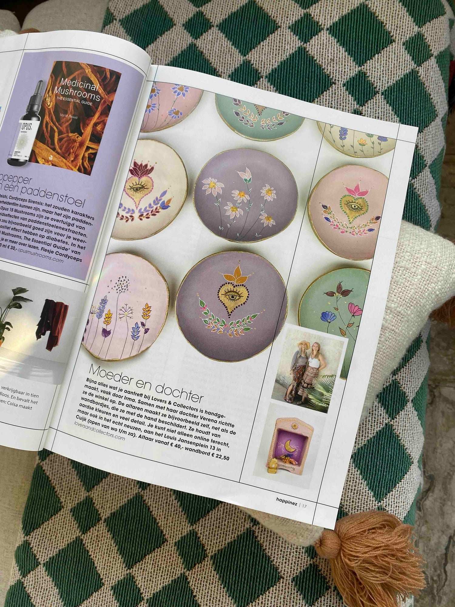 Ook Happinez is liefhebber van de unieke, handgemaakte interieur producten van Lovers & Collectors! ♡ In de maandelijkse shopping section werd ons verhaal vertelt en tipte Happinez onze handgemaakte wandborden en altaren.