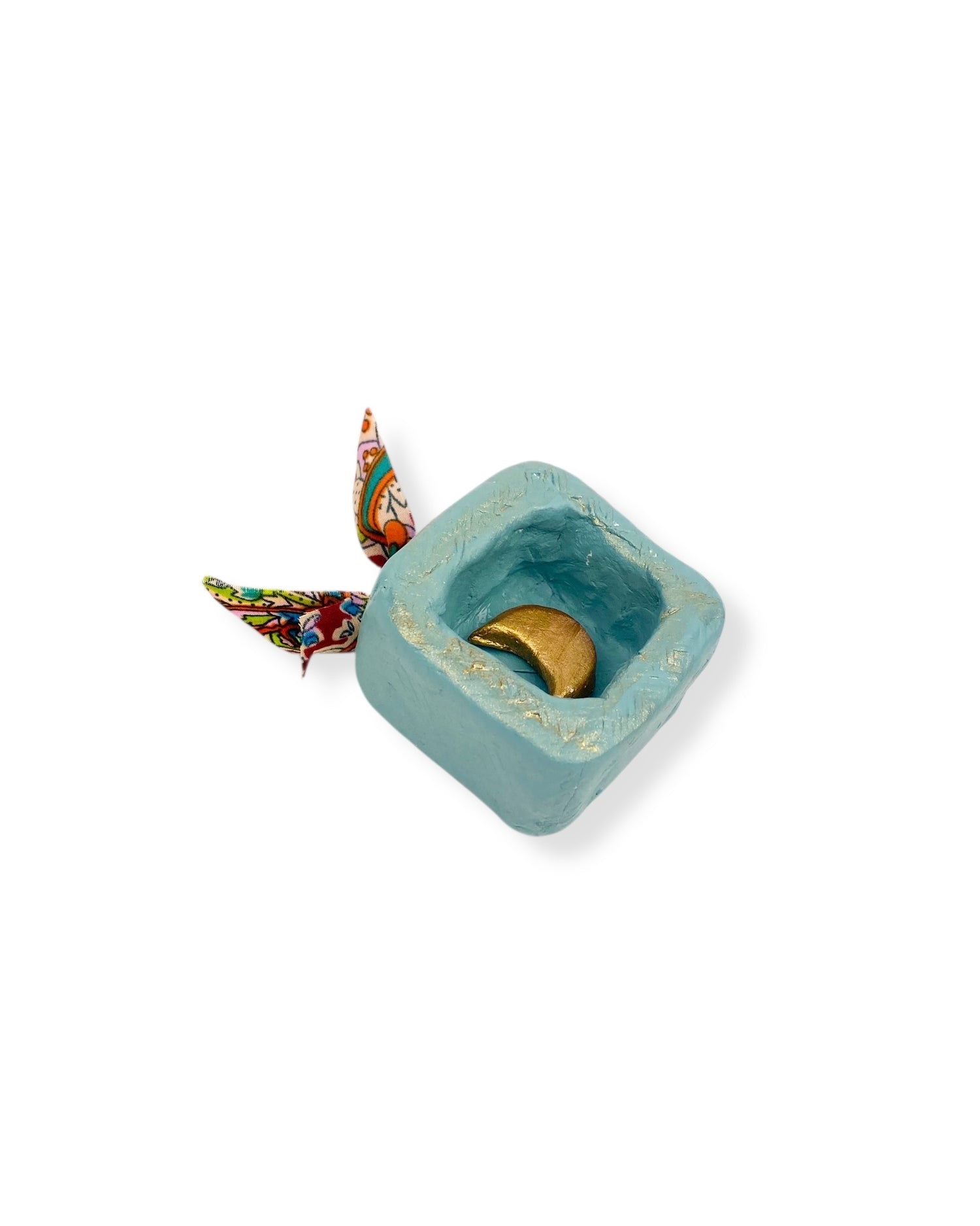 Dit mini nisje is een klein kunstwerkje voor aan de muur. Het is volledig met de hand gemaakt van klei, door shopeigenaresse Irma in ons atelier in Haps. Het nisje is versierd met een gouden maantje en een bijpassend lint waarmee je het kan ophangen aan de muur. Geef het nisje een mooi plekje in huis of combineer het met andere handgemaakte wanddecoratie, zoals een wandtegeltje, wandbord of altaar.