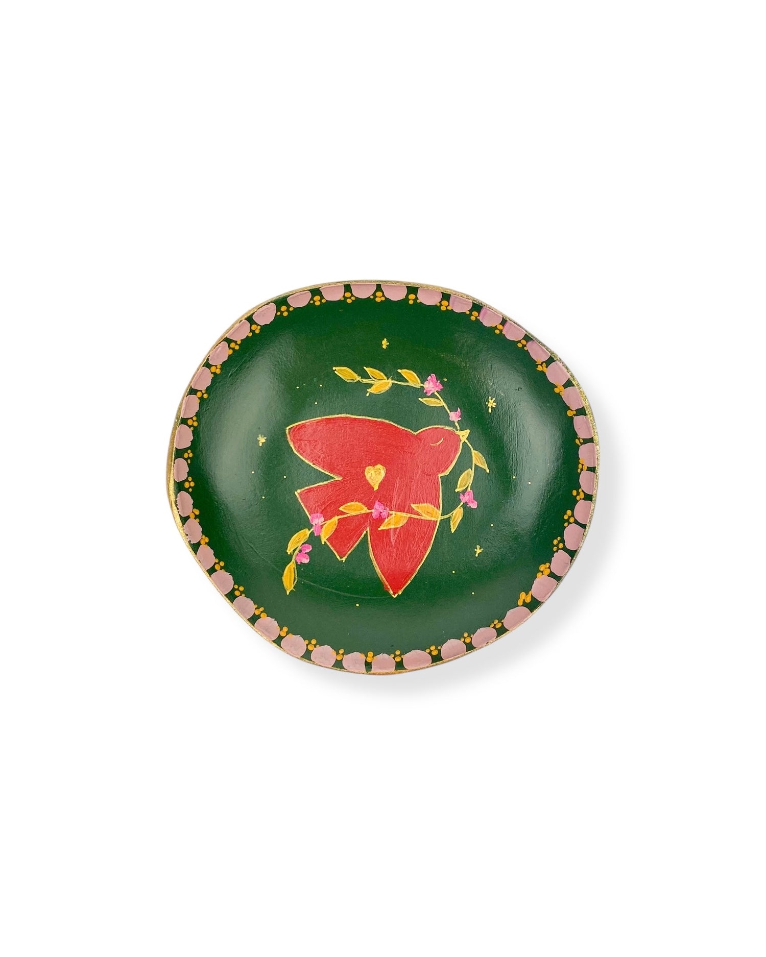 Dit wandbord is een kunstwerk voor aan de muur. Het is volledig met de hand gemaakt van klei, door shopeigenaresse Irma in ons atelier in Haps. Het wandbord is versierd met groene schilderingen, een zwaluw en heeft een haakje waarmee je het kan ophangen aan de muur. Geef het wandbord een mooi plekje in huis of combineer het met andere handgemaakte wanddecoratie, zoals een wandtegeltje, mini nisje of altaar. Getipt door vtwonen en Happinez!