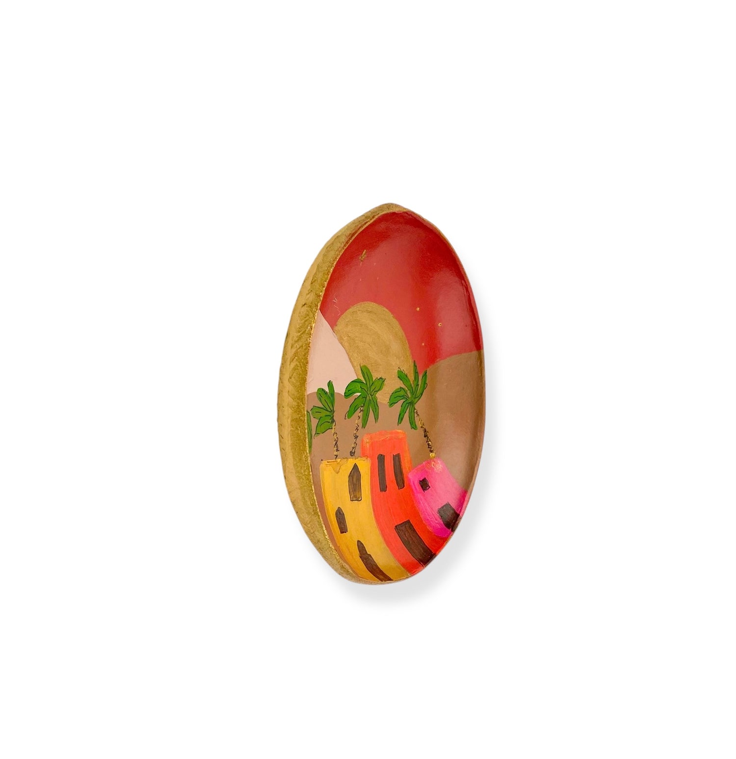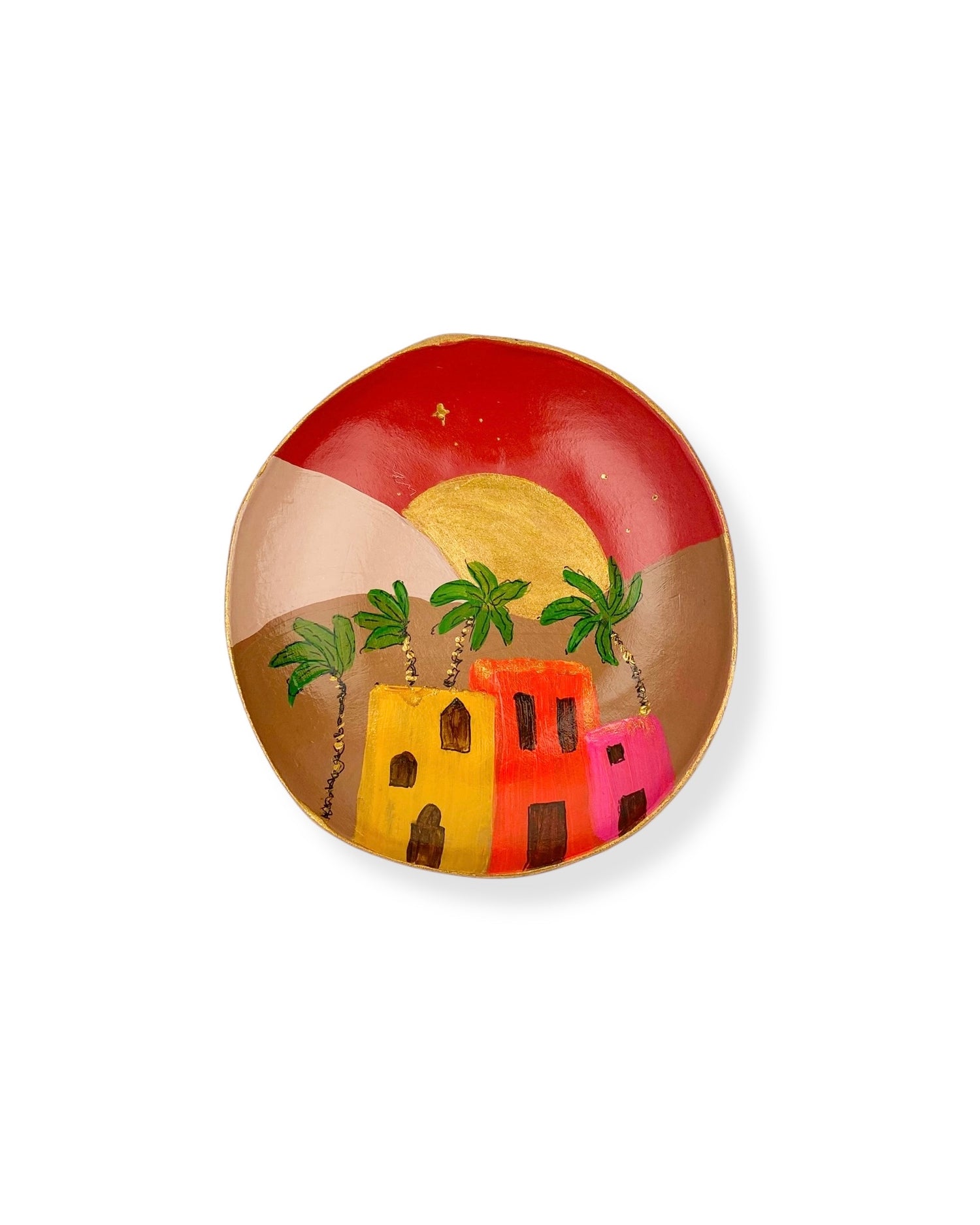 Dit wandbord is een kunstwerk voor aan de muur. Het is volledig met de hand gemaakt van klei, door shopeigenaresse Irma in ons atelier in Haps. Het wandbord is versierd met een Marokkaans doorkijkje, palmbomen en heeft een haakje waarmee je het kan ophangen aan de muur. Geef het wandbord een mooi plekje in huis of combineer het met andere handgemaakte wanddecoratie, zoals een wandtegeltje, mini nisje of altaar. Getipt door vtwonen en Happinez!
