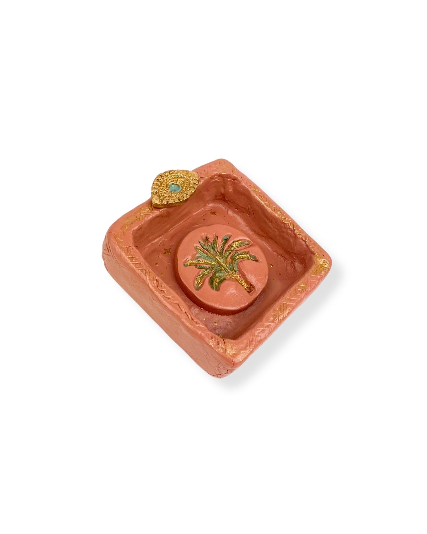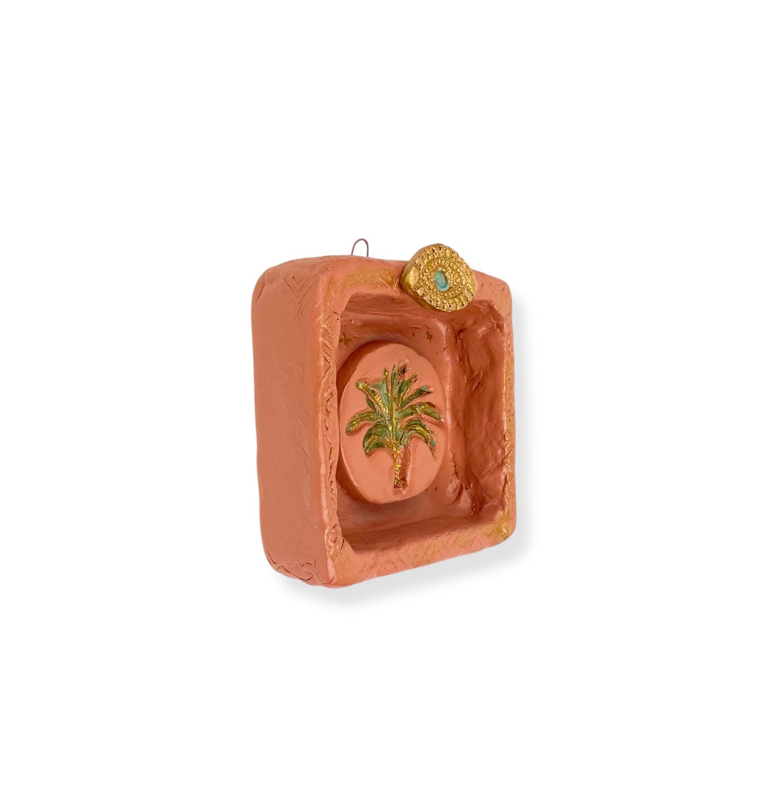 Dit altaar is een kunstwerk voor aan de muur. Het is volledig met de hand gemaakt van klei, door shopeigenaresse Irma in ons atelier in Haps. Het altaar is versierd met terracotta schilderingen, een palmboom en derde oog. Het heeft een haakje waarmee je het kan ophangen aan de muur. Creëer een eigen plekje in huis voor bezinning met een huisaltaar of geef het een mooi plekje aan de muur en combineer het met andere handgemaakte wanddecoratie zoals een wandtegeltje, wandbord of mini nisje.