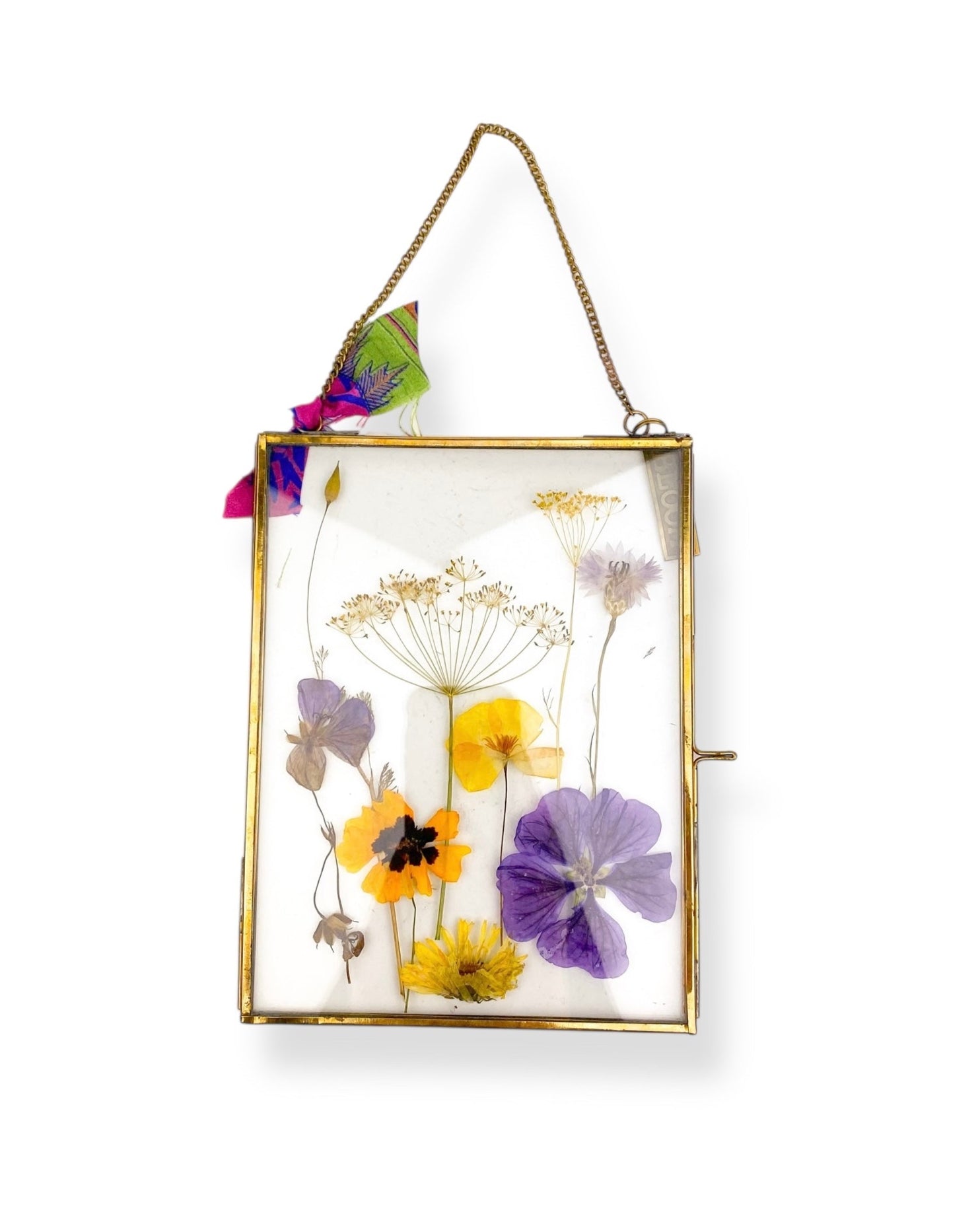 Dit metalen lijstje is upcycled door shopeigenaresse Irma, in ons atelier in Haps. Het lijstje is versierd met verschillende droogbloemen die door onszelf gedroogd zijn.