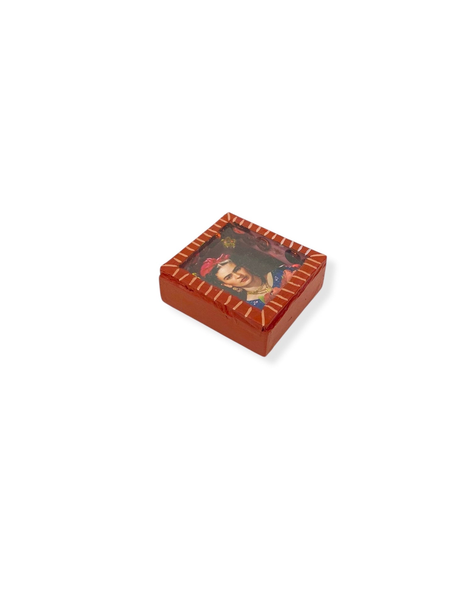 Dit Frida lijstje heeft een magneet aan de achterkant, maar je kan hem ook neerzetten. Hij is versierd met het portret van de Mexicaanse kunstenares Frida Kahlo.