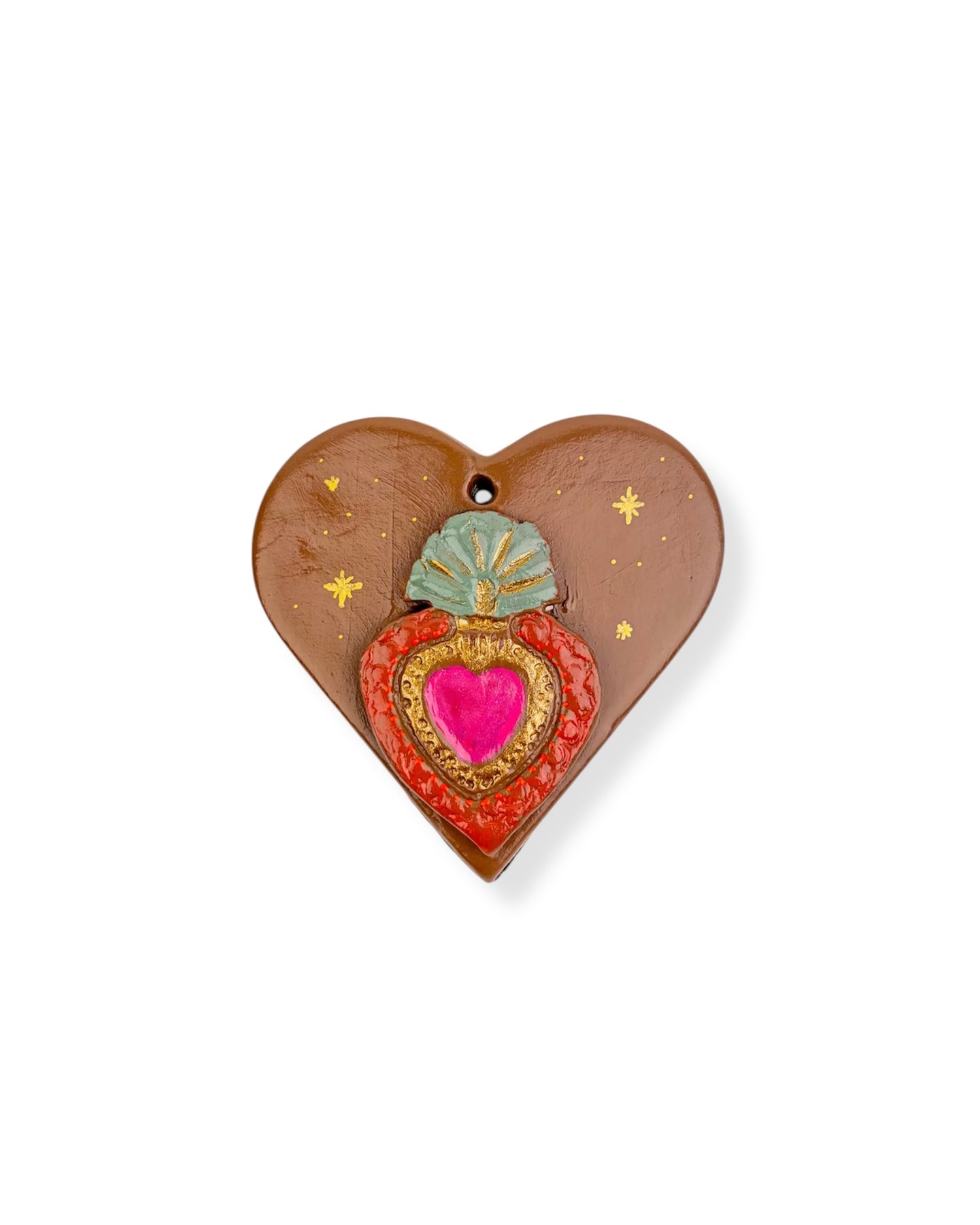 Dit Milagros hart is een klein kunstwerkje voor aan de muur. Het is volledig met de hand gemaakt van klei, door shopeigenaresse Irma in ons atelier in Haps. Het hart is versierd met gekleurde schilderingen. Geef het hart een mooi plekje in huis of combineer het met andere handgemaakte wanddecoratie, zoals een wandtegeltje, wandbord of altaar.