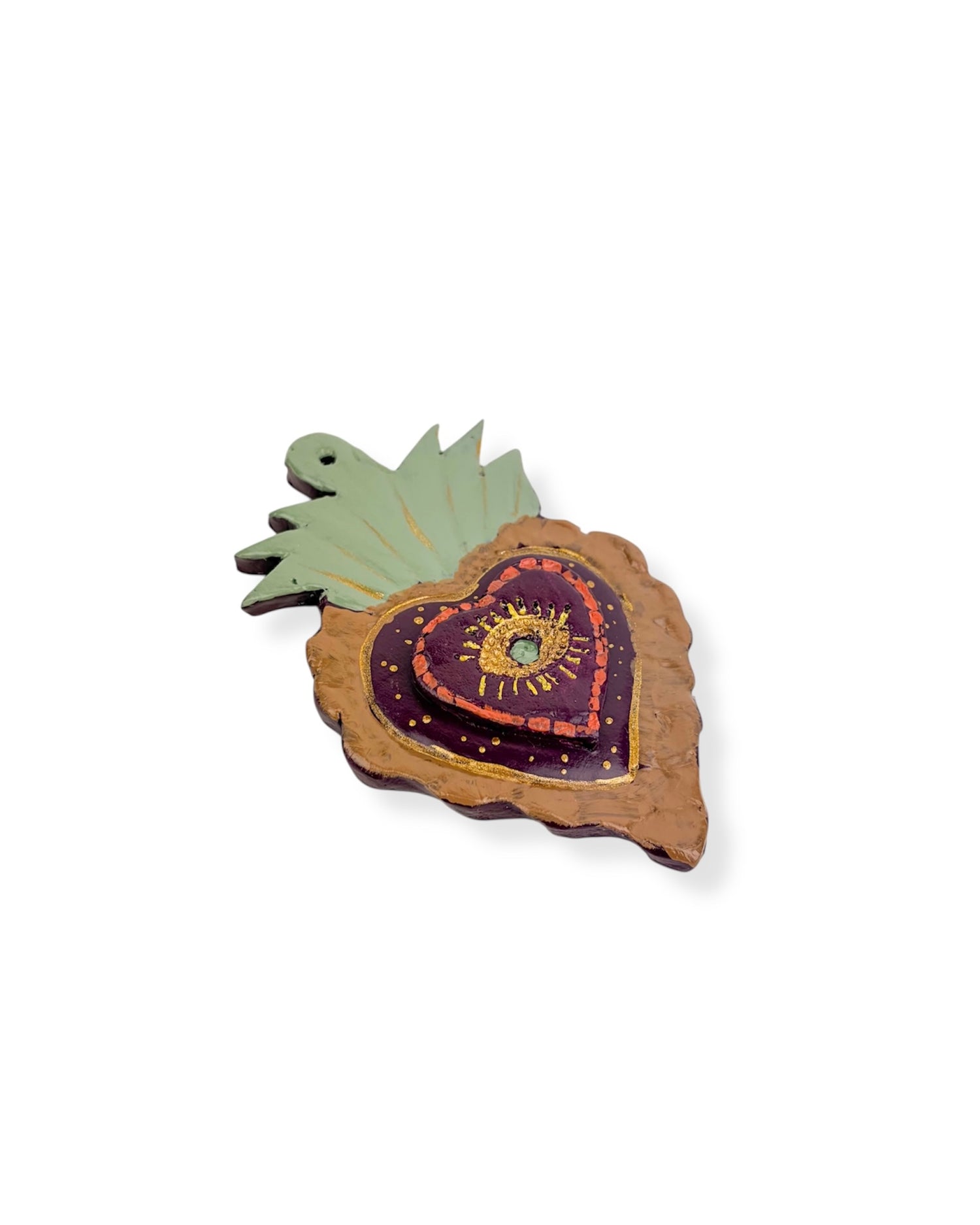 Dit Milagros hart is een klein kunstwerkje voor aan de muur. Het is volledig met de hand gemaakt van klei, door shopeigenaresse Irma in ons atelier in Haps. Het hart is versierd met gekleurde schilderingen en een derde oog. Geef het hart een mooi plekje in huis of combineer het met andere handgemaakte wanddecoratie, zoals een wandtegeltje, wandbord of altaar.