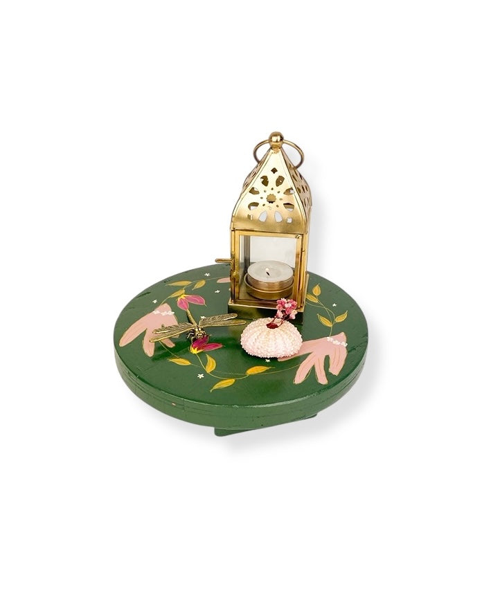 Dit ronde houten tafeltje is met de hand beschilderd door shopeigenaresse Irma in ons atelier. Gebruik het tafeltje bijvoorbeeld als huisaltaar en creëer een eigen plekje in huis voor rust, dankbaarheid of bezinning. Of decoreer het tafeltje met sfeervolle items zoals een waxinelichthouder of verse bloemen.