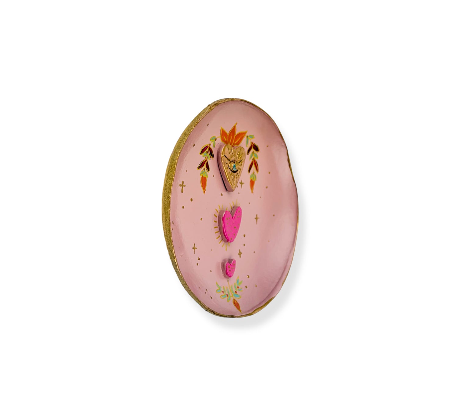 Dit wandbord is een kunstwerk voor aan de muur. Het is volledig met de hand gemaakt van klei, door shopeigenaresse Irma in ons atelier in Haps. Het wandbord is versierd met roze schilderingen, hartjes en heeft een haakje waarmee je het kan ophangen aan de muur. Geef het wandbord een mooi plekje in huis of combineer het met andere handgemaakte wanddecoratie, zoals een wandtegeltje, mini nisje of altaar. Getipt door vtwonen en Happinez!