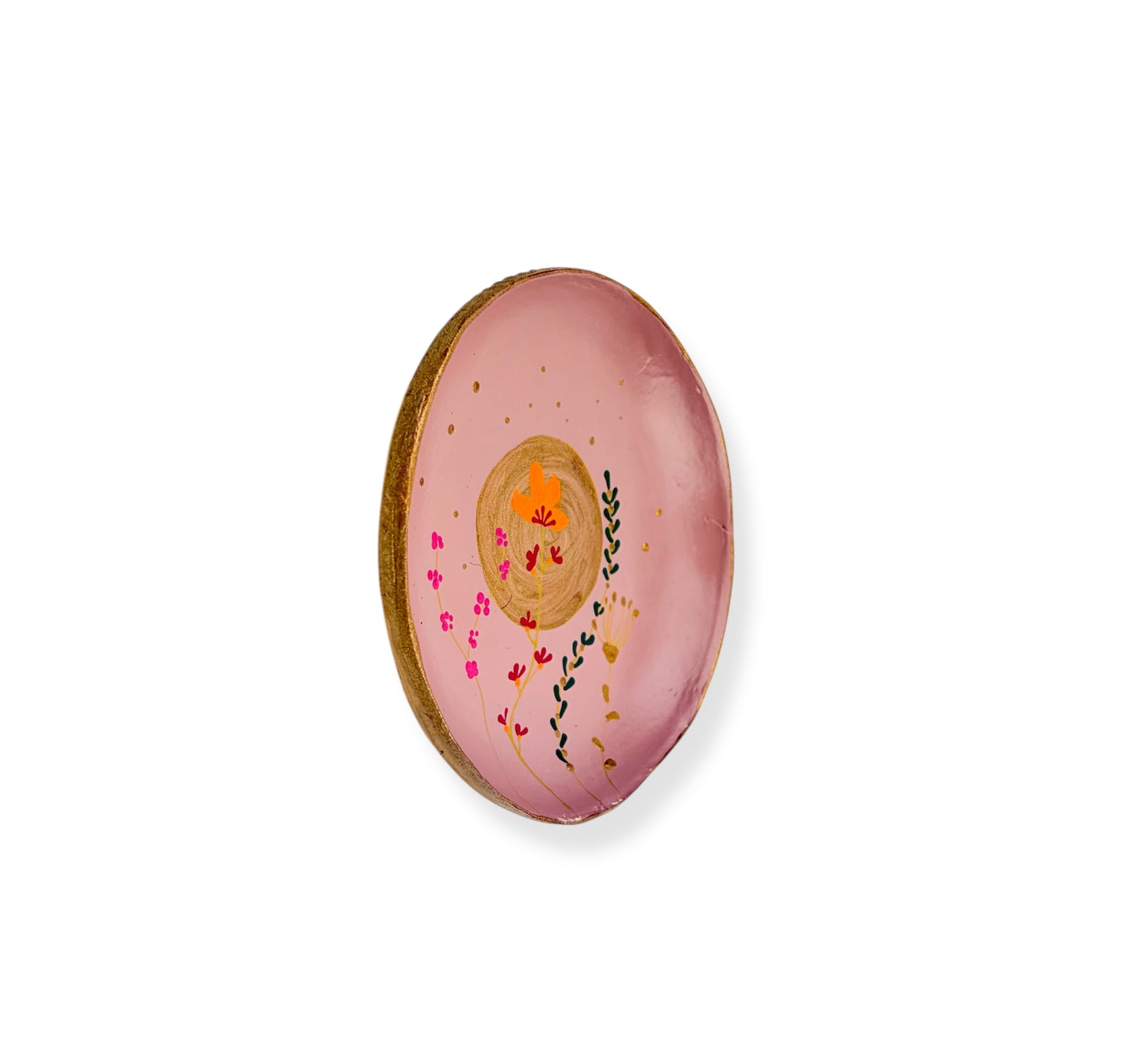 Dit wandbord is een kunstwerk voor aan de muur. Het is volledig met de hand gemaakt van klei, door shopeigenaresse Irma in ons atelier in Haps. Het wandbord is versierd met roze schilderingen, bloemen, een gouden maan en heeft een haakje waarmee je het kan ophangen aan de muur. Geef het wandbord een mooi plekje in huis of combineer het met andere handgemaakte wanddecoratie, zoals een wandtegeltje, mini nisje of altaar. Getipt door vtwonen en Happinez!