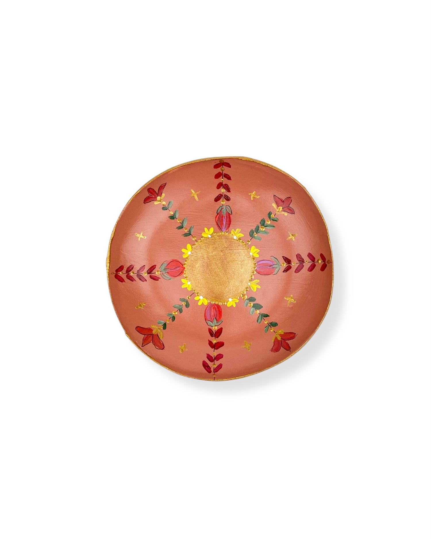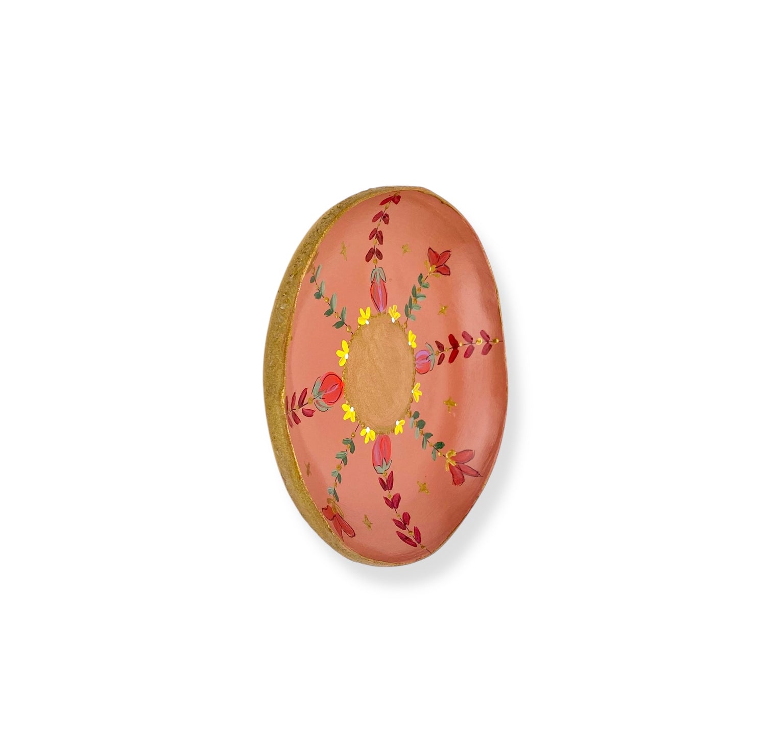 Dit wandbord is een kunstwerk voor aan de muur. Het is volledig met de hand gemaakt van klei, door shopeigenaresse Irma in ons atelier in Haps. Het wandbord is versierd met terracotta schilderingen, bloemen, een gouden maan en heeft een haakje waarmee je het kan ophangen aan de muur. Geef het wandbord een mooi plekje in huis of combineer het met andere handgemaakte wanddecoratie, zoals een wandtegeltje, mini nisje of altaar. Getipt door vtwonen en Happinez!